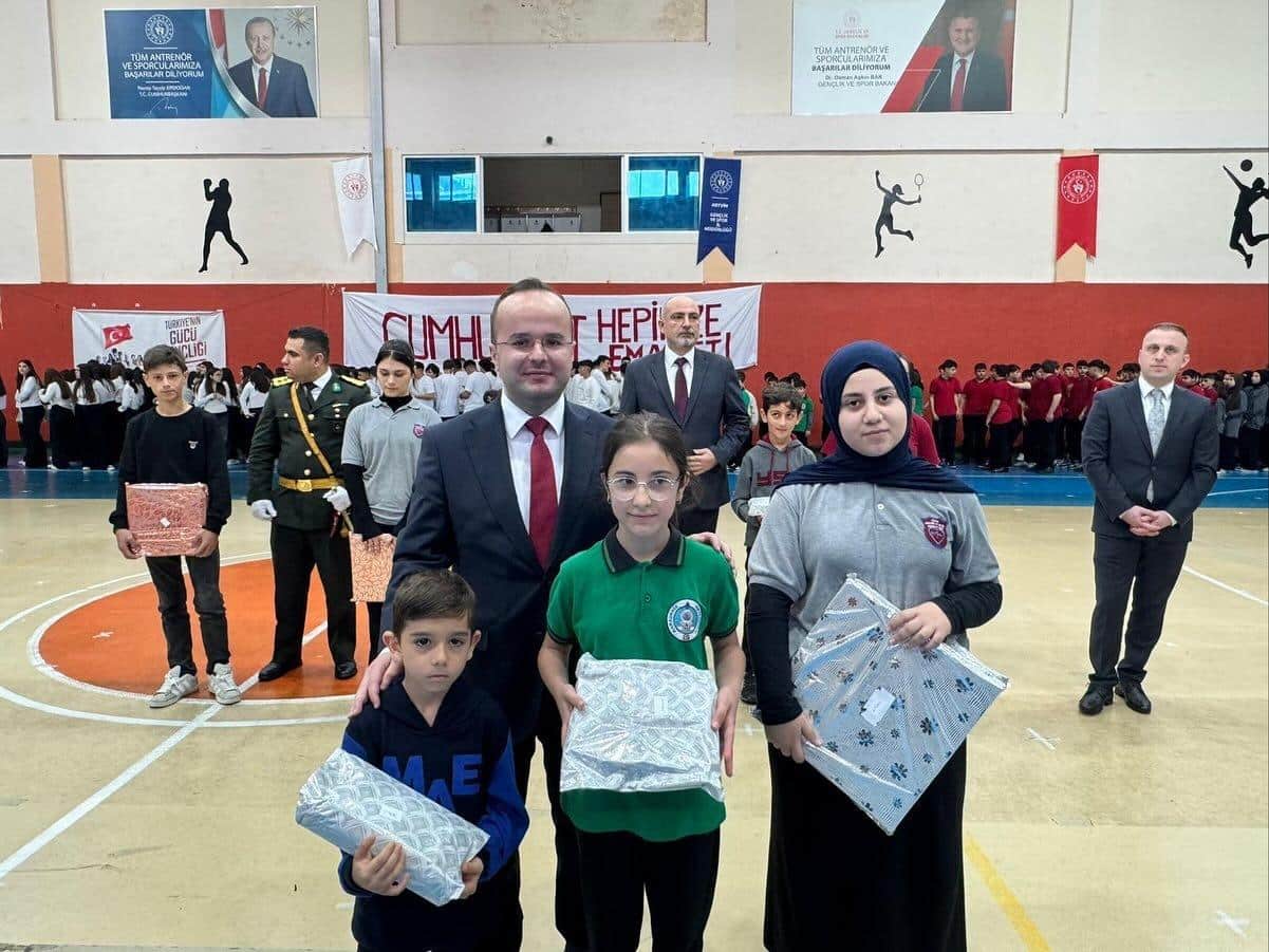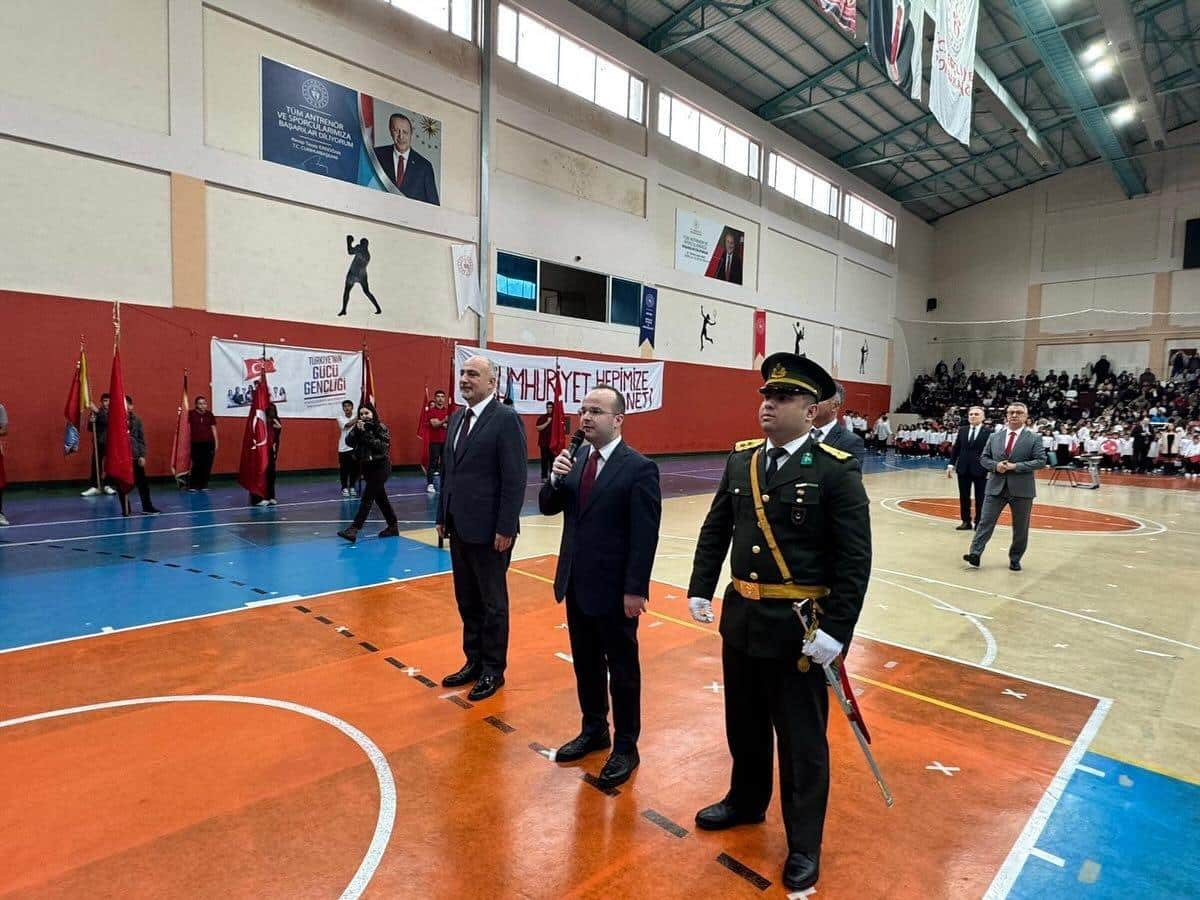 Tebrikatın ardından ilçe kutlama programı ise Gençlik ve Spor İlçe Müdürlüğünün Salonunda Kaymakamımız Sayın Abdullah Arslantürk, P. Üsteğmen Durmuş Kaya ve Belediye Başkanı Utku Cihan'ın öğretmen, öğrenci ve vatandaşlarımızın bayramını kutlamasıyla başladı.