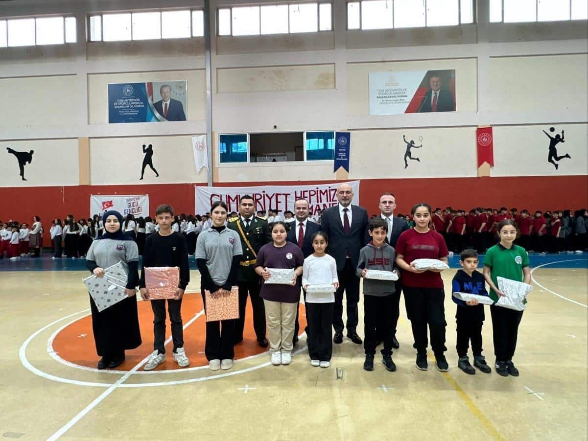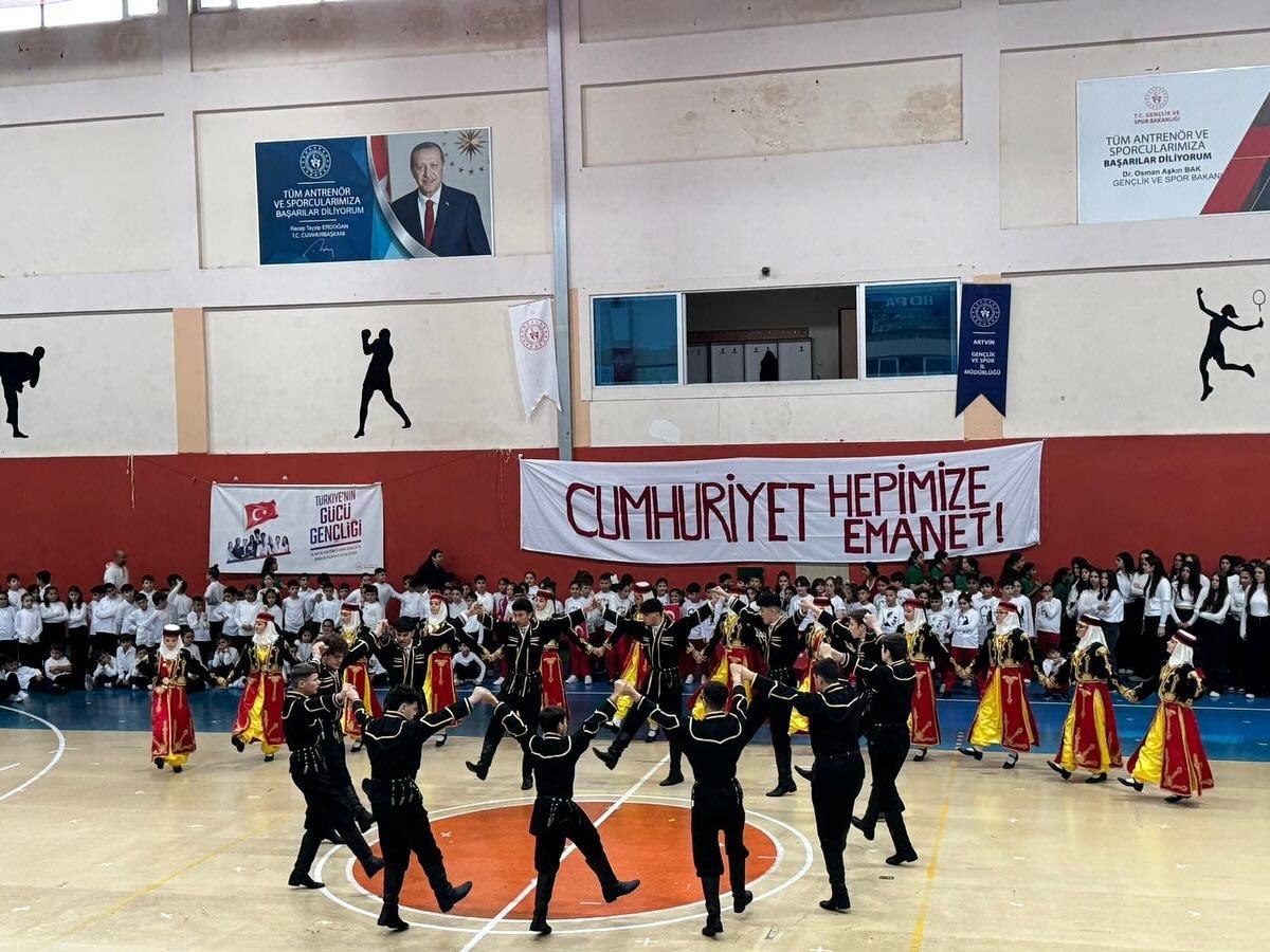 Sayın Kaymakamımızın konuşmalarının ardından öğrencilerimiz Cumhuriyet konulu şiirler okudu ve Hüsnü Ciner İlkokulu öğrencileri gösterilerini gerçekleştirdi. Nuri Vatan Anadolu Lisesi öğrencileri tarafından ise 102 öğrenci ile 102.yıl Zeybek gösterisi sergilendi. Halk Oyunları gösterisinden sonra 29 Ekim Cumhuriyet Bayramı münasebetiyle ilçemizde gerçekleştiren müsabakalarda dereceye girenlerin ödüllendirilmesi ile program son buldu.